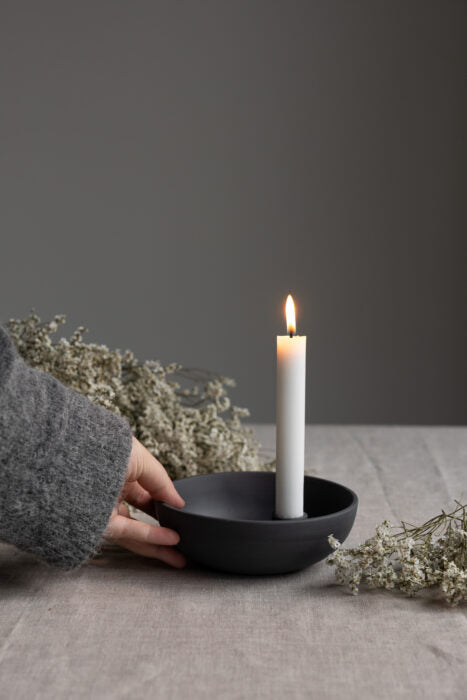 Bitte beachte, dass die empfindlichen unglasierten Produkte mehr Sorgfalt benötigen als glasierte: Hat die matte, unbehandelte Schale Schmutz abbekommen, reinige sie mit einem Reinigungsschwamm – auch ein Radiergummi ist einen Versuch wert. Bitte schütze die unglasierte Schale mit einer Folie, falls Du etwas Abfärbendes hineinlegst und beachte, dass auch farbige Kerzen abfärben können. Falls fettiges Wachs in die unbehandelte Oberfläche eingedrungen ist, kannst Du sie sofort mit warmem Wasser säubern.