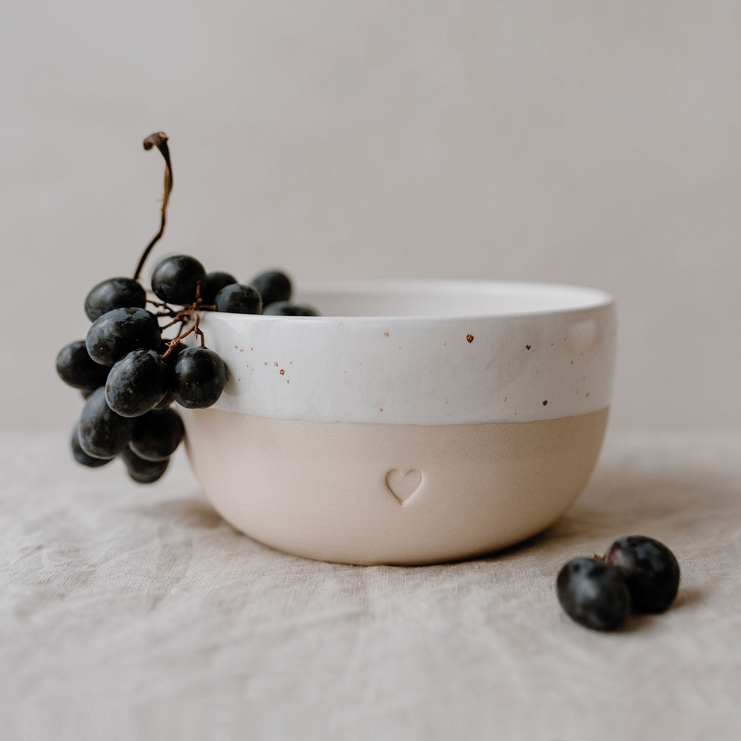 Die Schüssel Herz von Eulenschnitt lässt unsere Herzen höher Schlagen. Jede Schale hat seinen eigenen Charm, denn jede Schale wird in einer kleinen portugiesischen Töpferei in liebevoller Handarbeit gefertigt, mit einer liebevollen Prägung verziert und mit einer individuellen Glasur versehen.